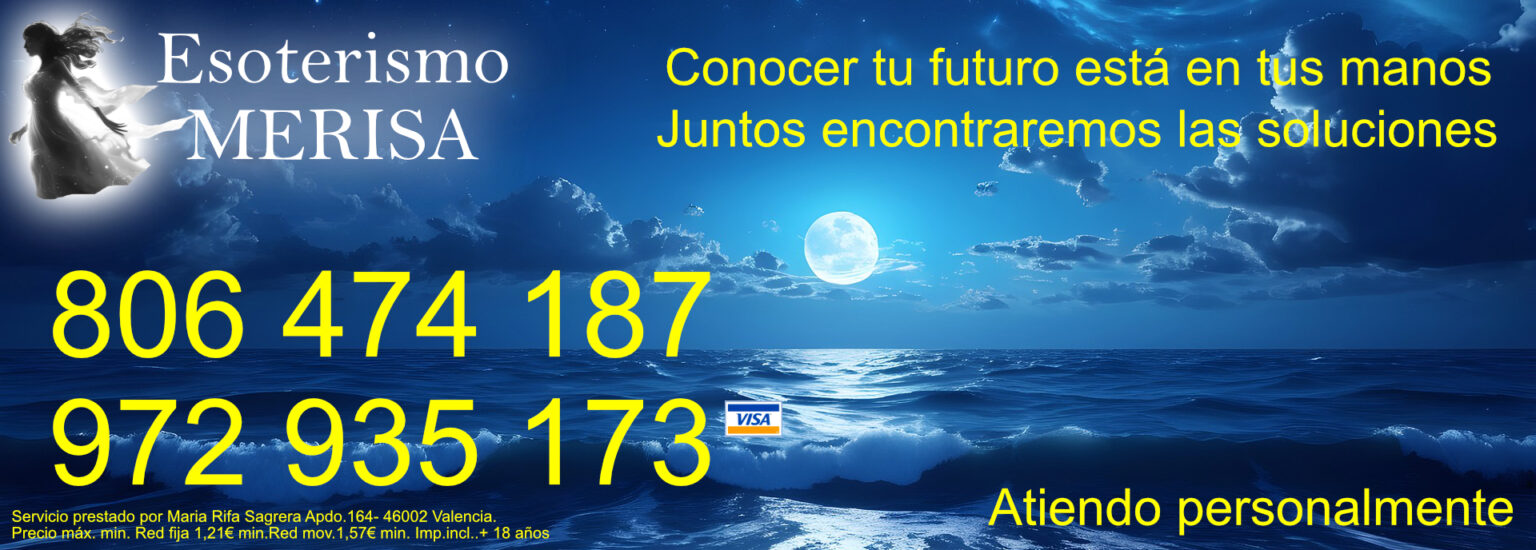 Nuestros números de consulta directa son 806 474 187. Consultacon pago por tarjeta visa 972 93 51 73. Servicio prestado por Maria Rifa Sagrera Apdo.164- 46002 Valencia.Precio máx. min. Red fija 1,21€ min.Red mov.1,57€ min. Imp.incl..+ 18 años